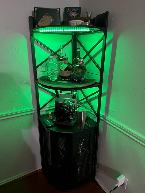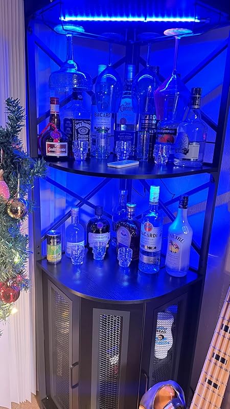 | Feature | 【Corner Wine Cabinet with Charging Station】Our bar cabinet is equipped with 3 Outlets& 2 USB ports, which help you easily charge your coffee maker, juicers, bar accessories, glowing lights decorations even your phone and other electrical appliances. don’t need to find additional power strips, All-in-one Design adds more convenience to your life. The length of the cable is 6.56FT long. |