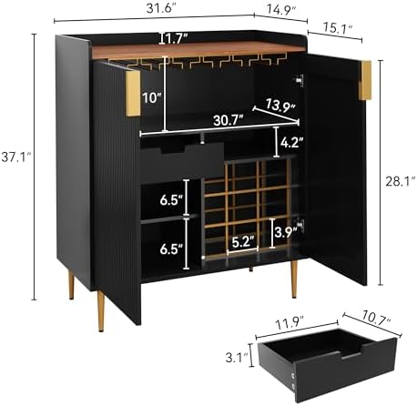 15 reviews for Deluxe Modern Coffee Bar Cabinet with Wine Rack&Drawers