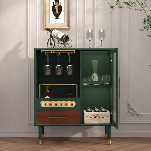 【Exquisite and stylish design】: This liquor buffet cabinet is available in two finishes. Gold accessories embellish the stylish green and classic black, creating a timeless modern look.