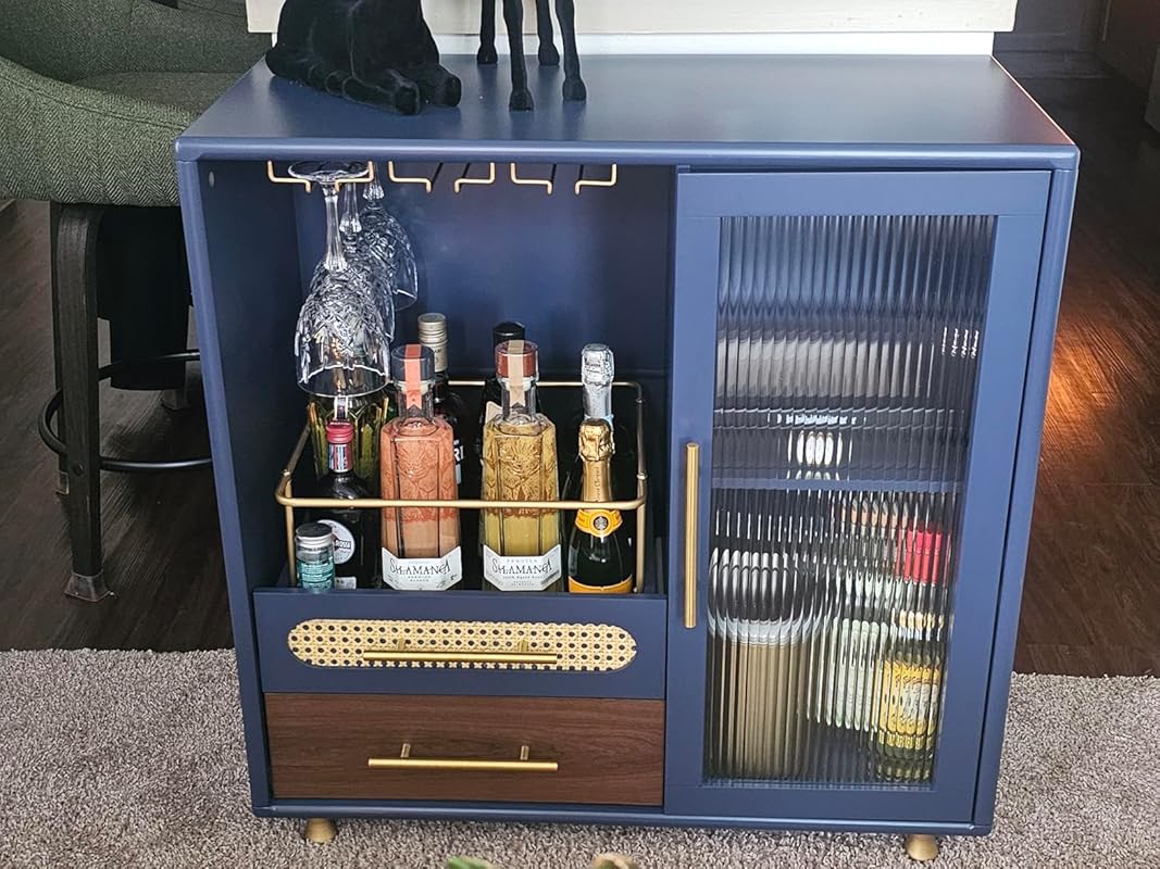 【Partitioned Storage】: The wine bar cabinet has ample internal storage space with 3 integrated stemware racks. The pull-out wine bottle storage space is convenient and quick(the drawers are smooth gliding).