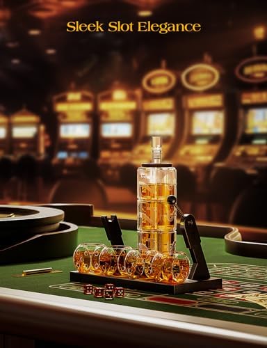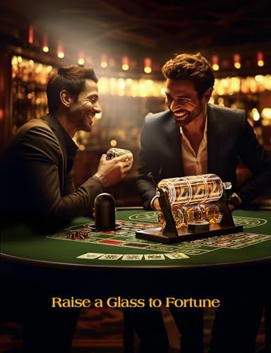| Feature | Luxury Design: Elevate your whiskey experience with our casino-inspired decanter; Every details has been crafted to mirror the look a slot machine, featuring a jackpot lineup of lucky seven. The integrated wooden roulette accompanied with four dice-shaped glasses , adds a touch of vintage elegance to enhance your drinking experience |