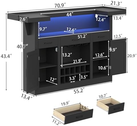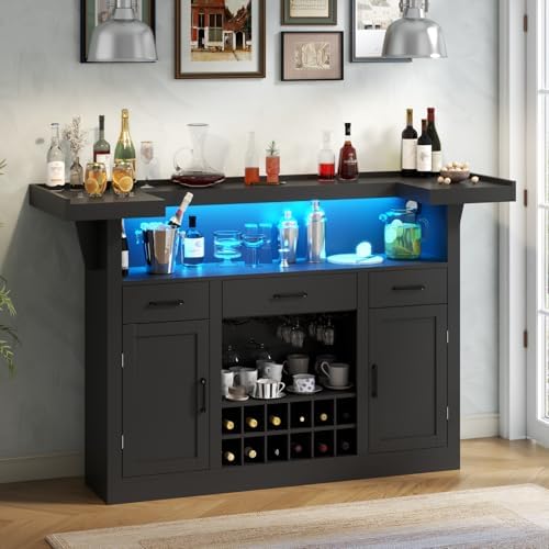 Multifunction Loomie Bar Table Cabinet with LED & 3 Drawers,Liquor Bar