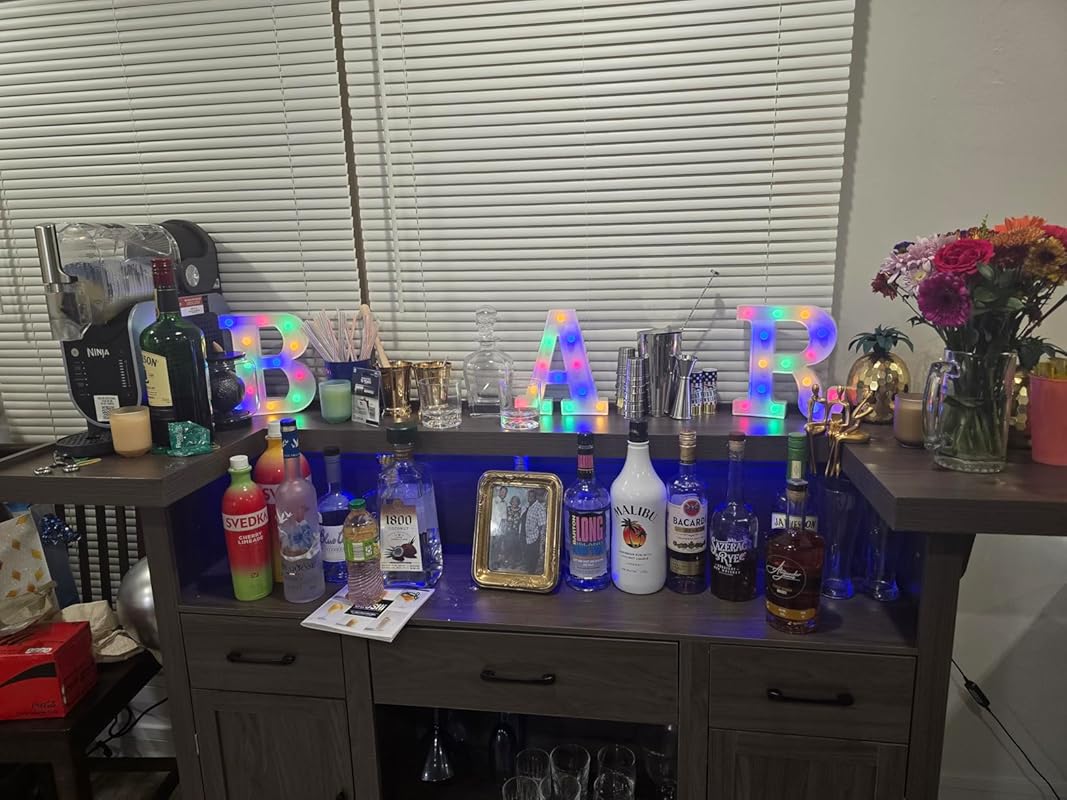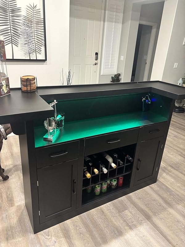 10 reviews for Multifunction Loomie Bar Table Cabinet with LED & 3 Drawers,Liquor Bar
