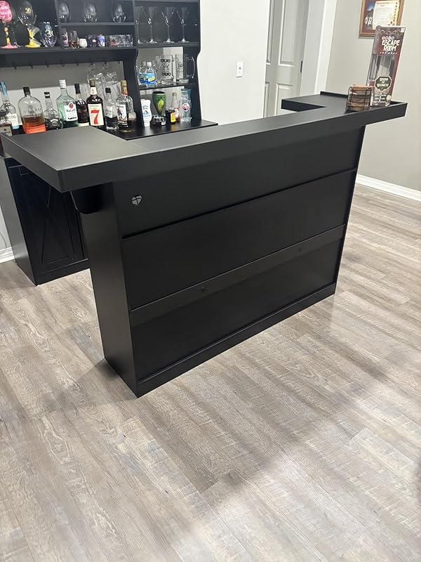 The bar looks amazing just as a picture took almost 45 hours to put together. It was extremely a headache. I feel as though so many little pieces as well as the material is as strong as I thought for the price, but it looks good. Hopefully it lasts long.