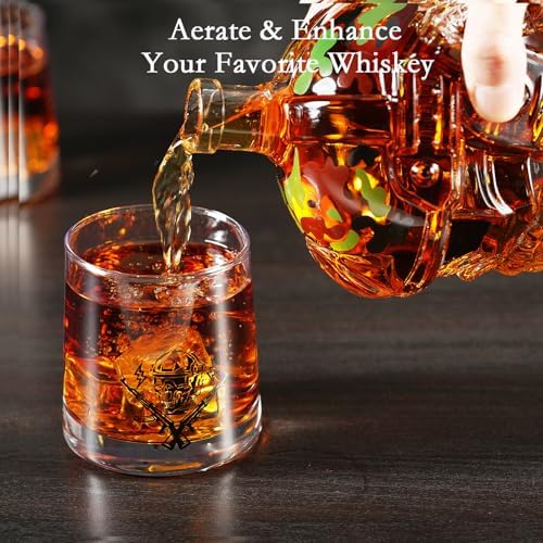 Unique Design—- The design of this whiskey decanter is inspired by special forces, featuring a tactical helmet shape, camouflage patterns, and a skull face. It is crafted for men who appreciate strength, strategy, and a hardcore style.