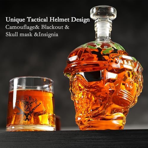 | Feature | Unique Design—- The design of this whiskey decanter is inspired by special forces, featuring a tactical helmet shape, camouflage patterns, and a skull face. It is crafted for men who appreciate strength, strategy, and a hardcore style. |