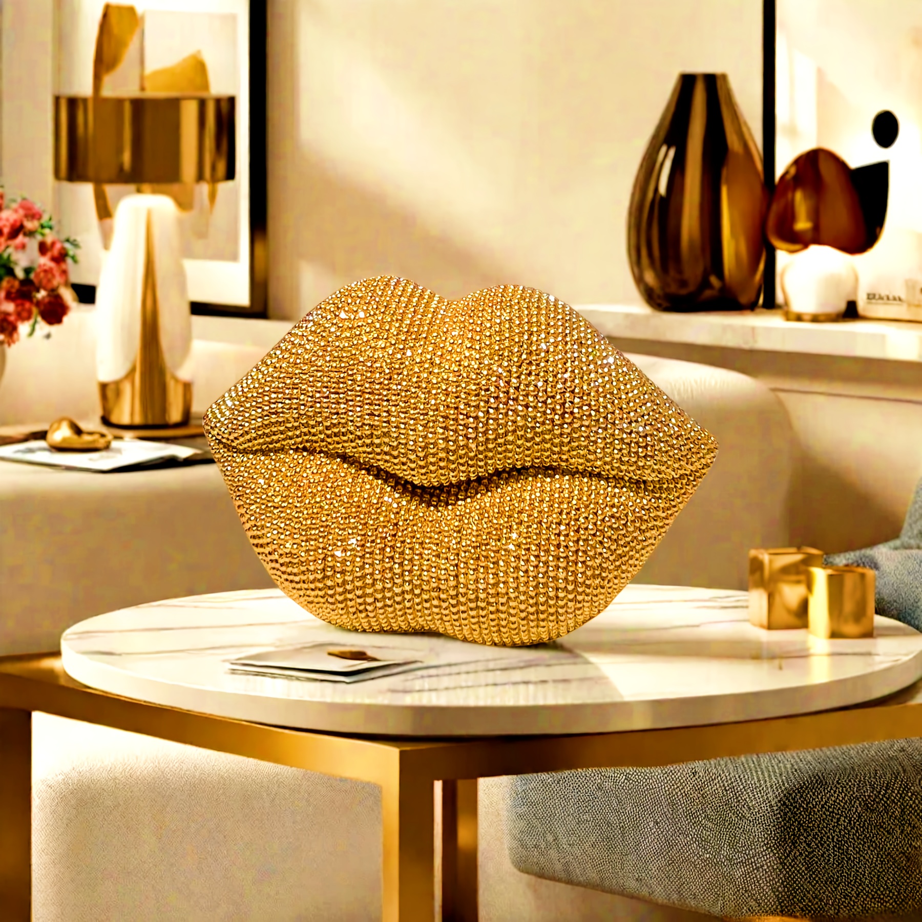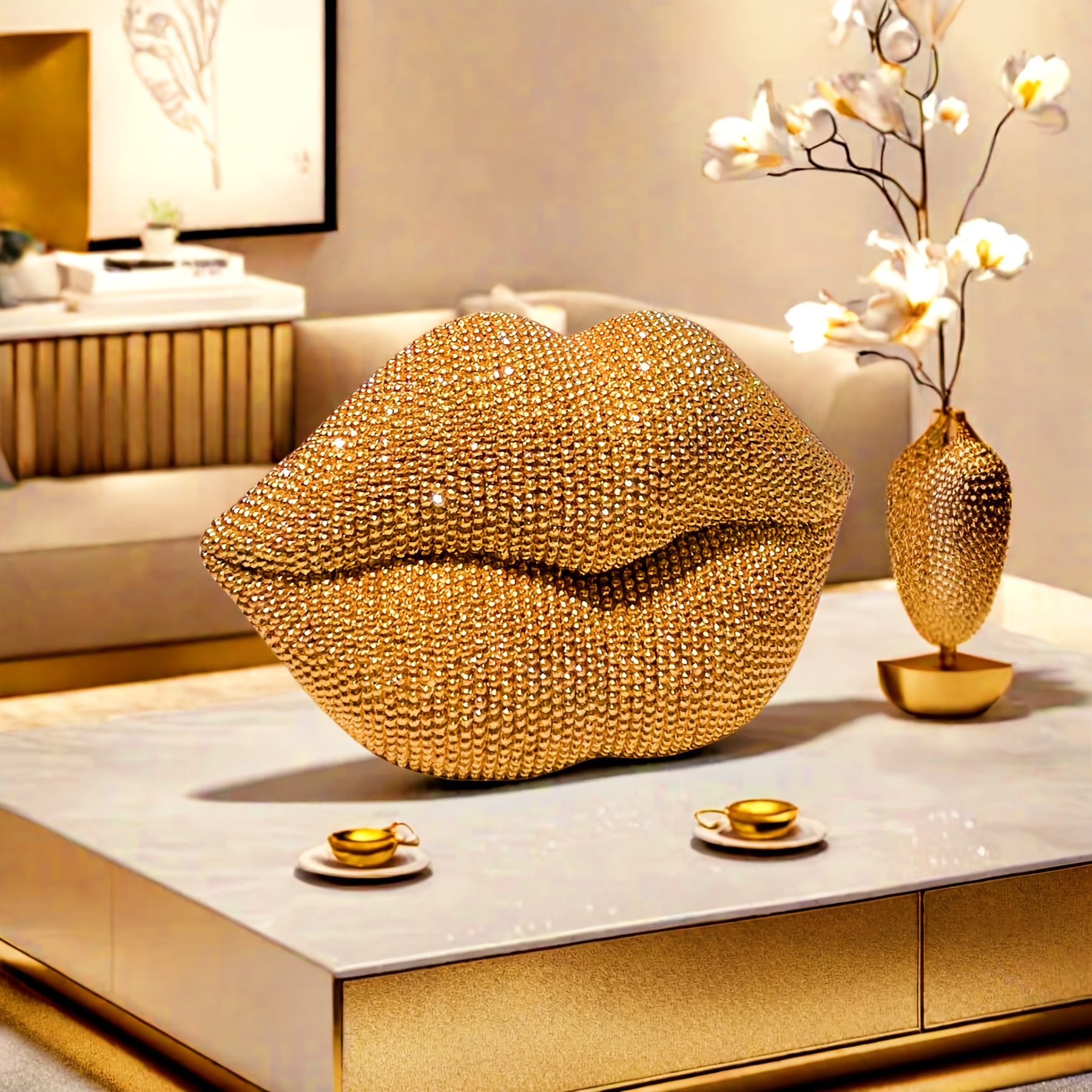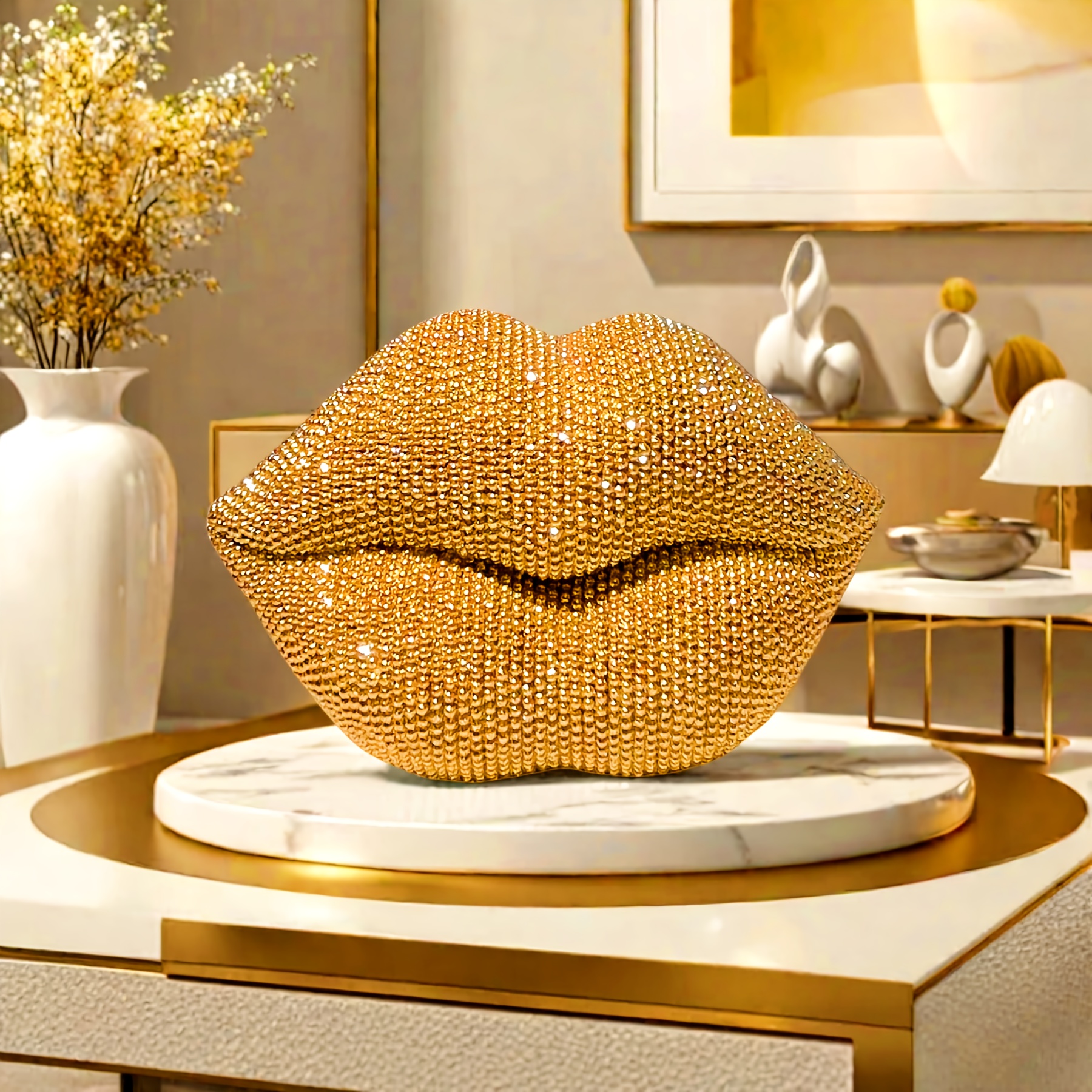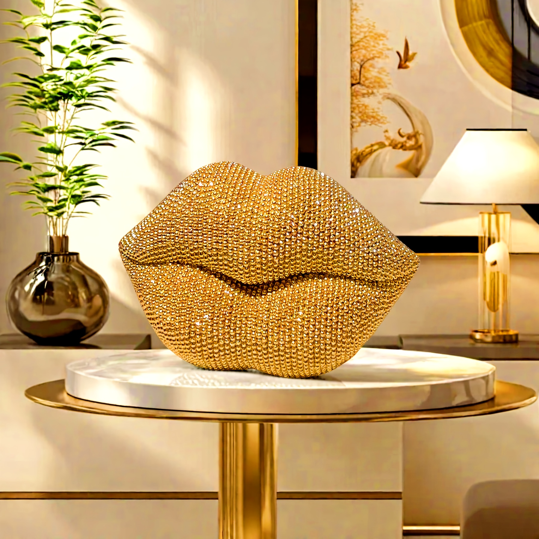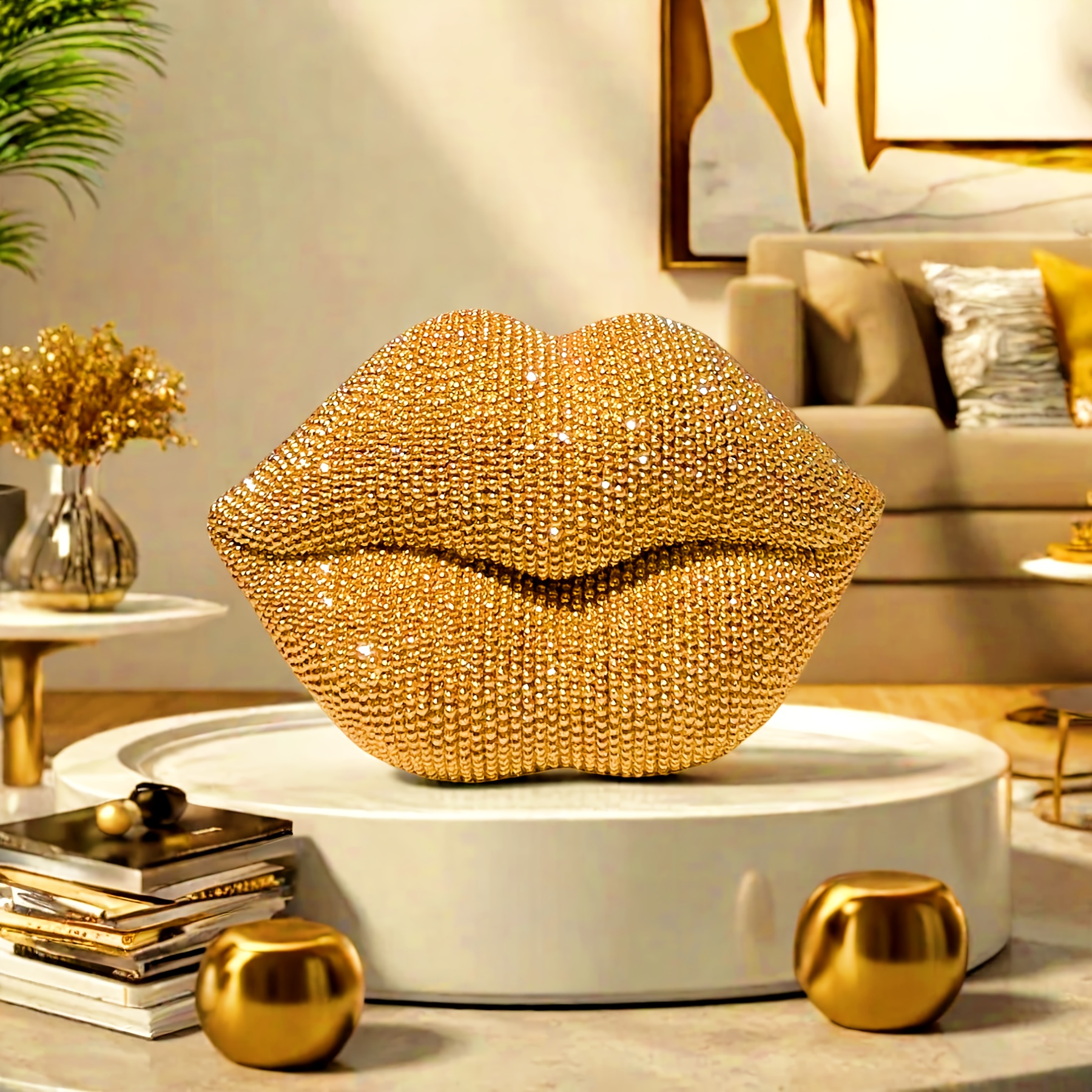 Golden Sexy Lips Rhinestones Statue